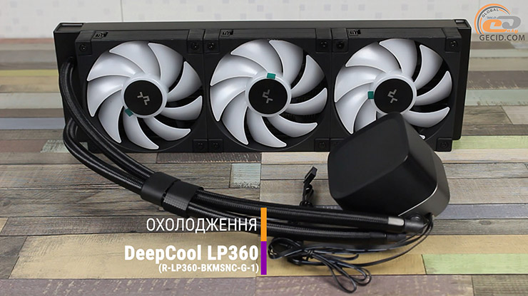 За охлаждение CPU отвечала 360-миллимитровая система жидкостного охлаждения DeepCool LP360. В ее основе – высокоэффективная помпа с рабочей скоростью до 3400 об/мин, что обеспечивает стабильный отвод тепла. А за ускорение теплообмена отвечают три 120 мм вентилятора на гидравлических подшипниках, которые работают со скоростью до 2400 об/мин и создают мощный воздушный поток.