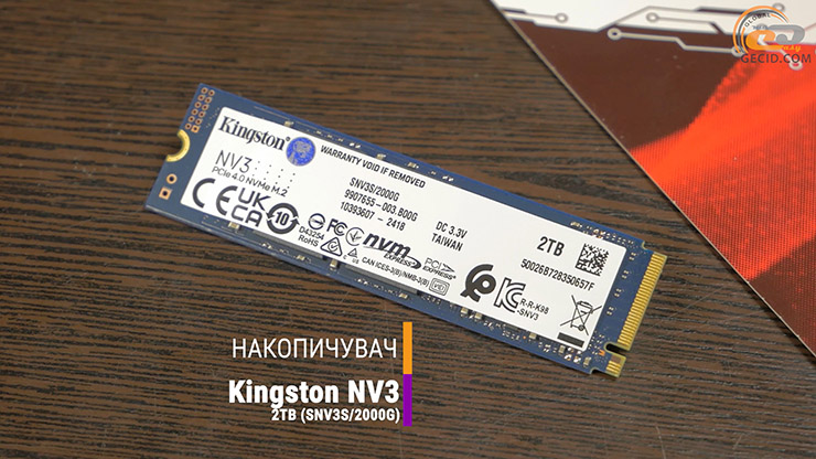 Для операционной системы и игр мы выбрали достаточно быстрый и недорогой SSD-диск Kingston NV3 емкостью 2 ТВ. Этот небуферизованный накопитель позволяет считывать данные на скорости до 6000 МБ/с, а записывать до 5000.