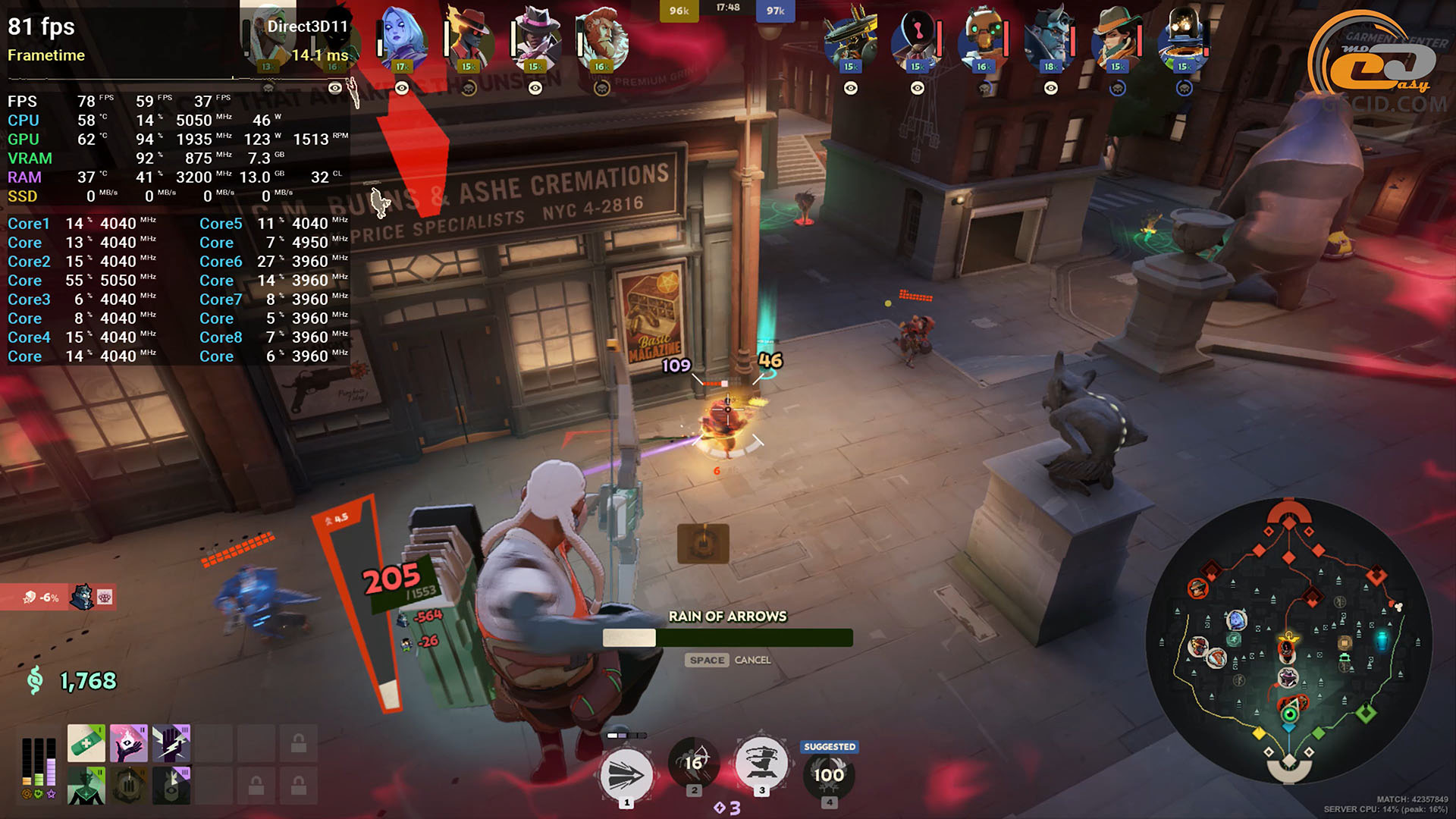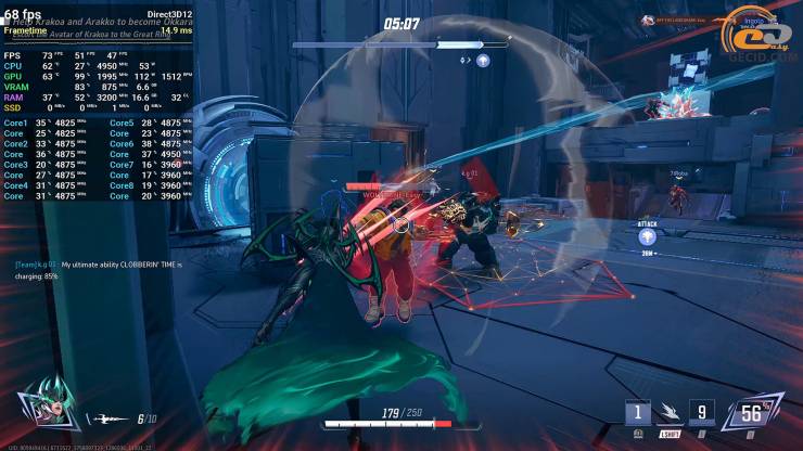Выйти на битву против других супергероев в Marvel Rival получается на высоких настройках картинки, а применение апскейлера в ультракачественном режиме позволит получить лучший уровень FPS в сочетании с приятной на глаз картинкой. Таким образом, мы получаем в среднем 60 кадров в секунду, но надо учитывать, что иногда будут встречаться короткие подергивания и проседание FPS во время активных столкновений. Поэтому, возможно, в этой игре из-за ее активности все же придется отдавать больший приоритет производительности чем хорошей картинке, и снижать настройки качества картинки.