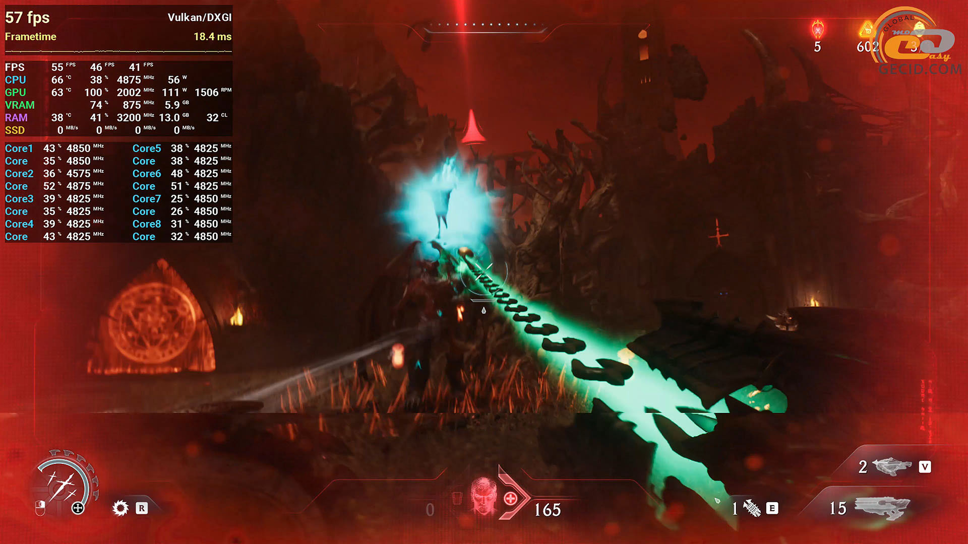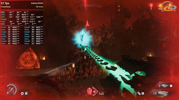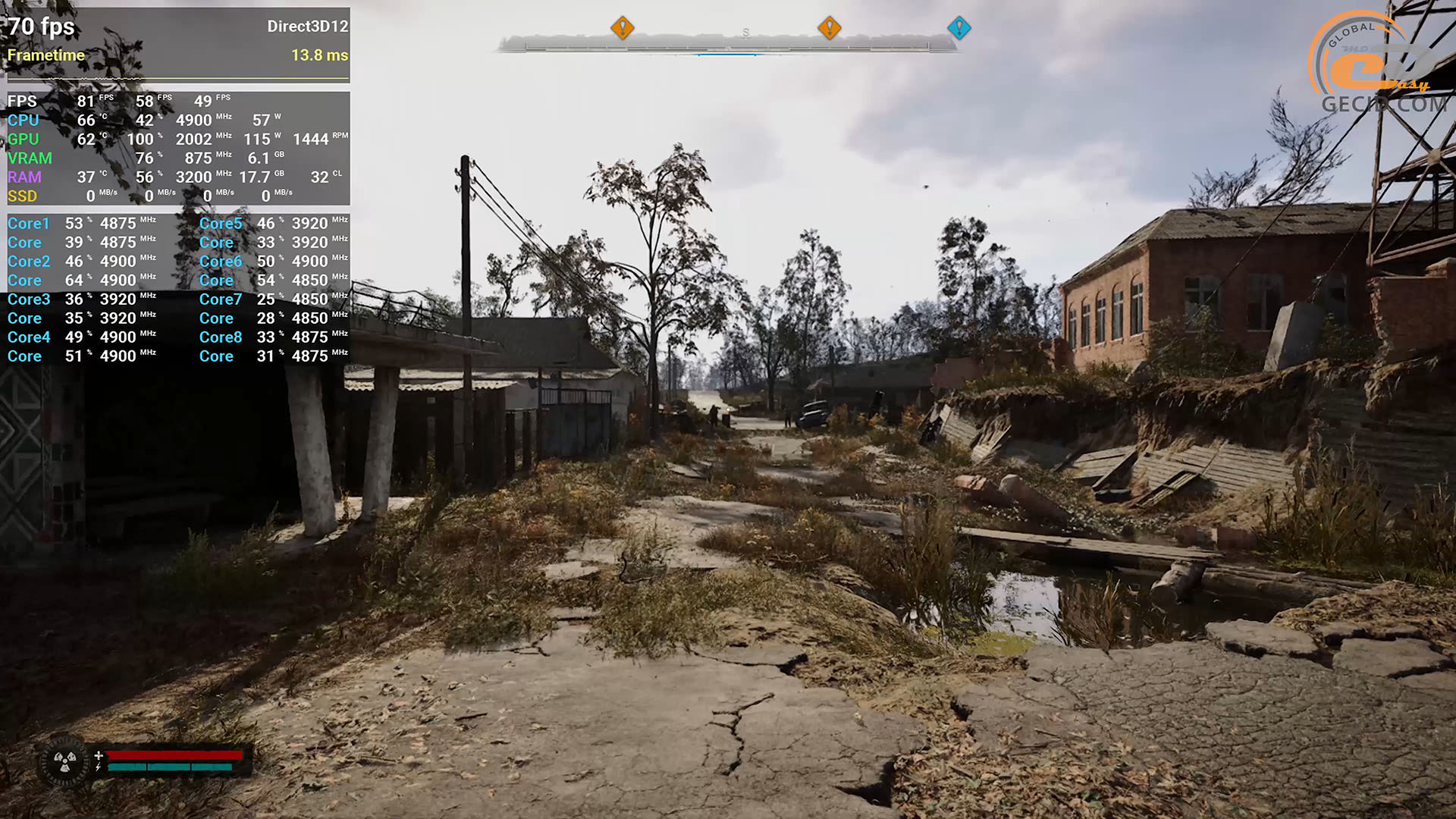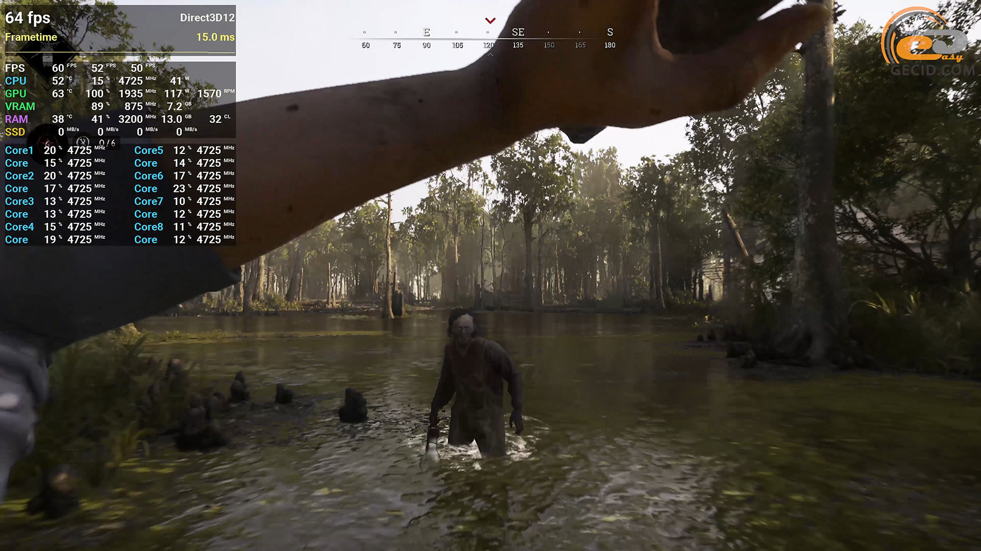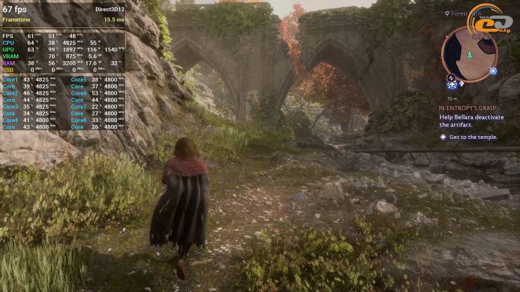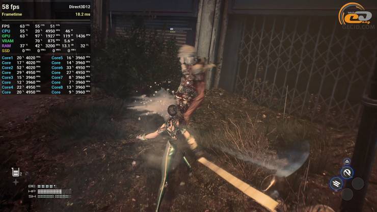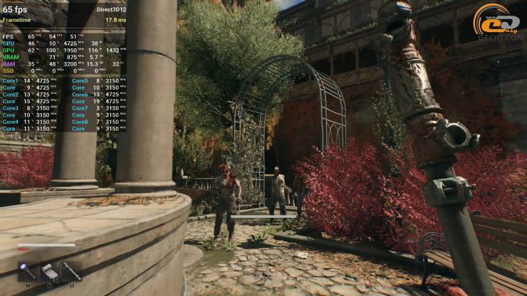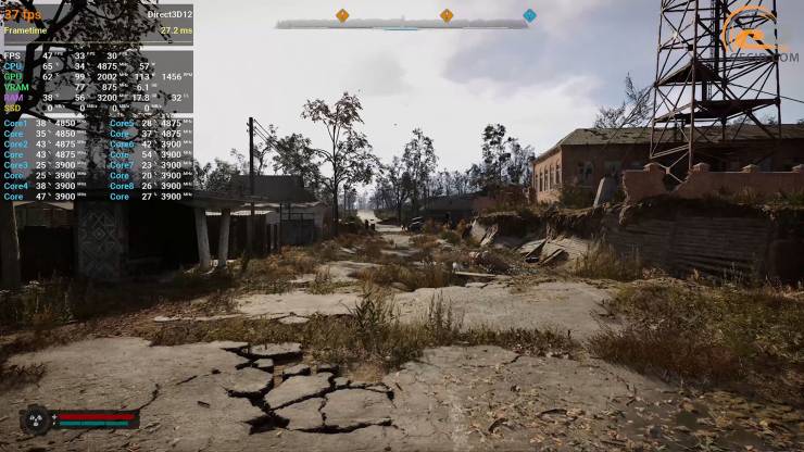 Однако игра позволяет применить генерацию кадров алгоритмами FSR, которая доступна на любых видеокартах. После таких манипуляций, судя по показателям, мы получаем почти вдвое улучшенный показатель FPS, но на самом деле игра ощущается чем-то средним между предыдущим тестом и показателями мониторинга. Однако задержки при управлении или проседании FPS больше не будут мешать получать максимум удовольствия от легендарного проекта.