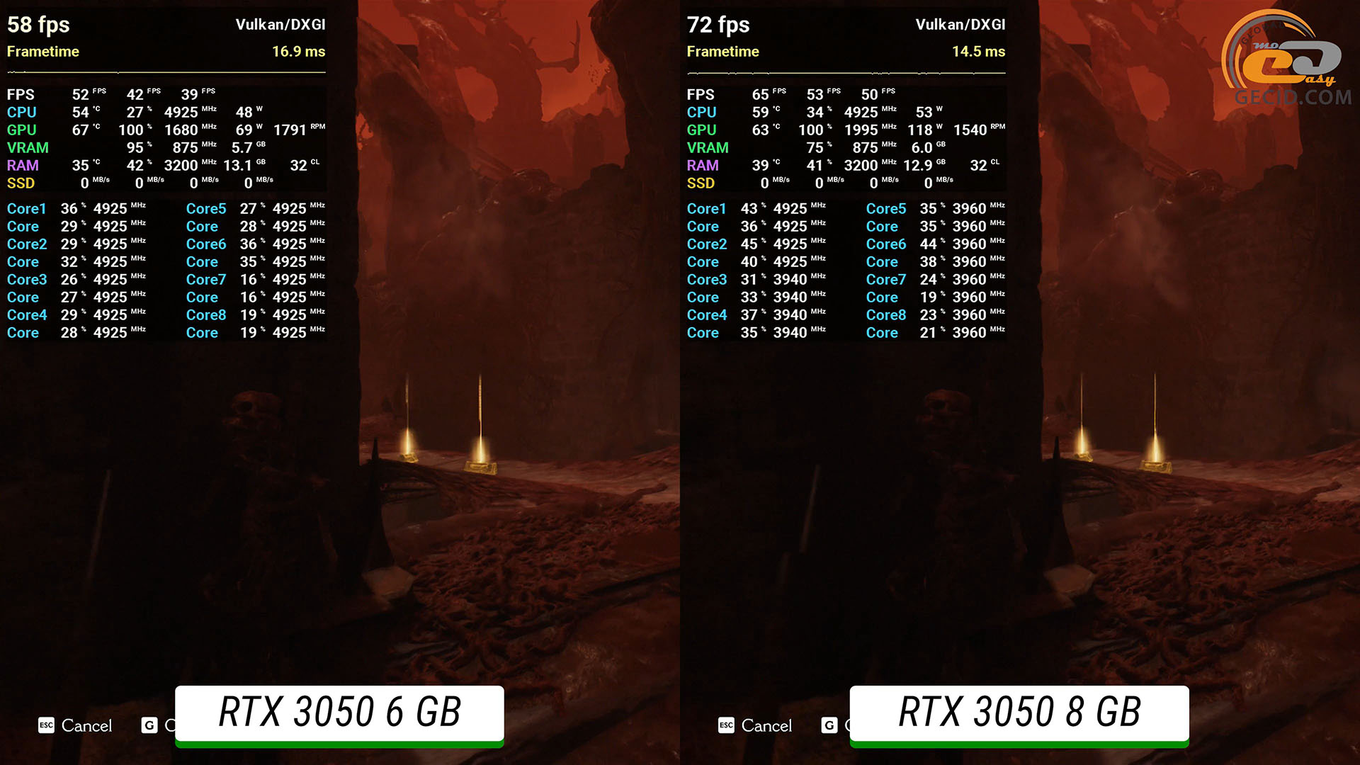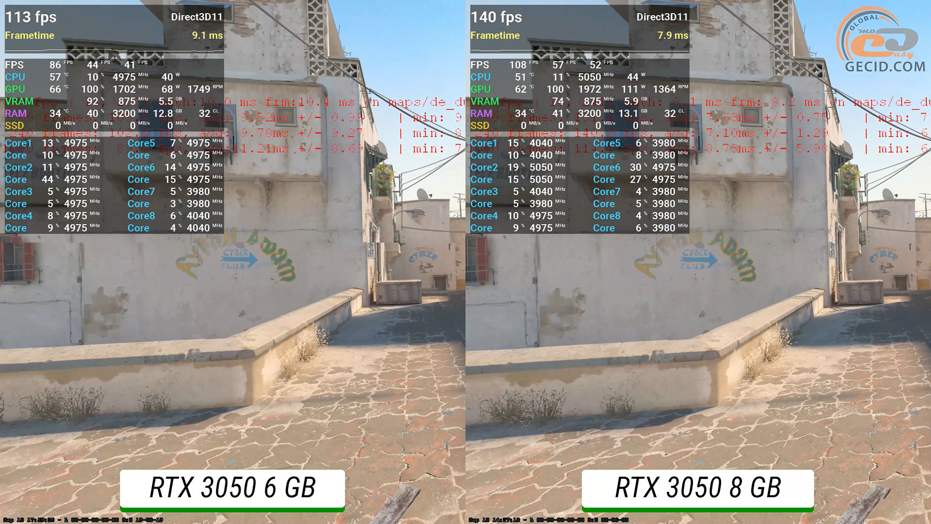 NVIDIA GeForce 3050 6 GB vs 8 GB