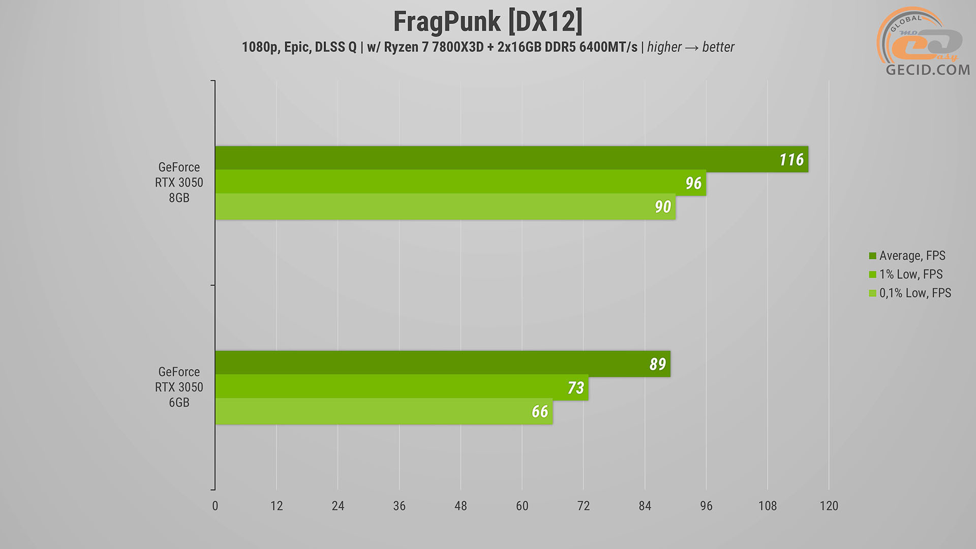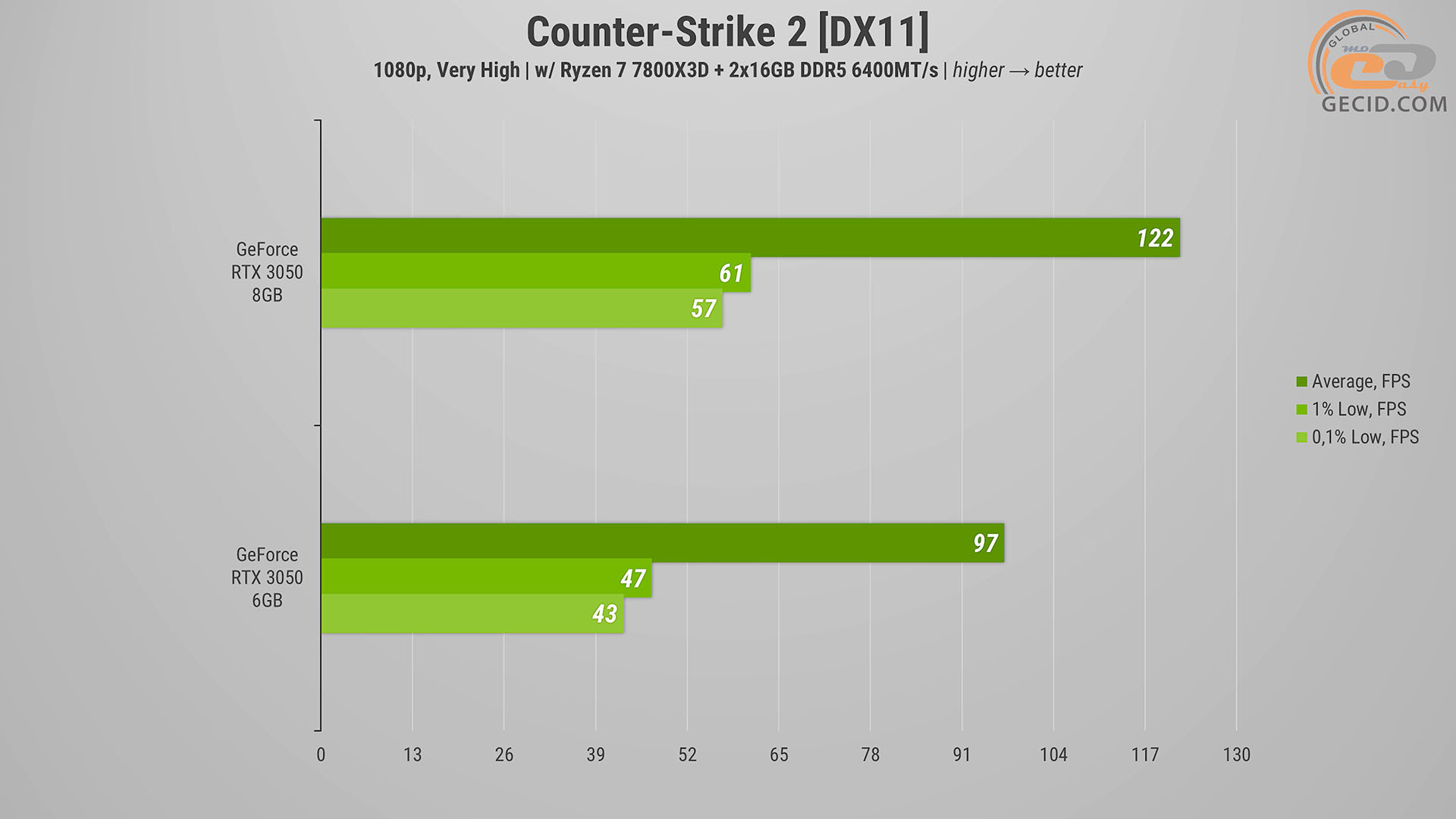 Так как, в статистике массового использования эта видеокарта не имеет разделения на разные варианты выполнения, мы решили провести несколько показательных тестов, чтобы наглядно увидеть разницу между этими двумя версиями RTX 3050.