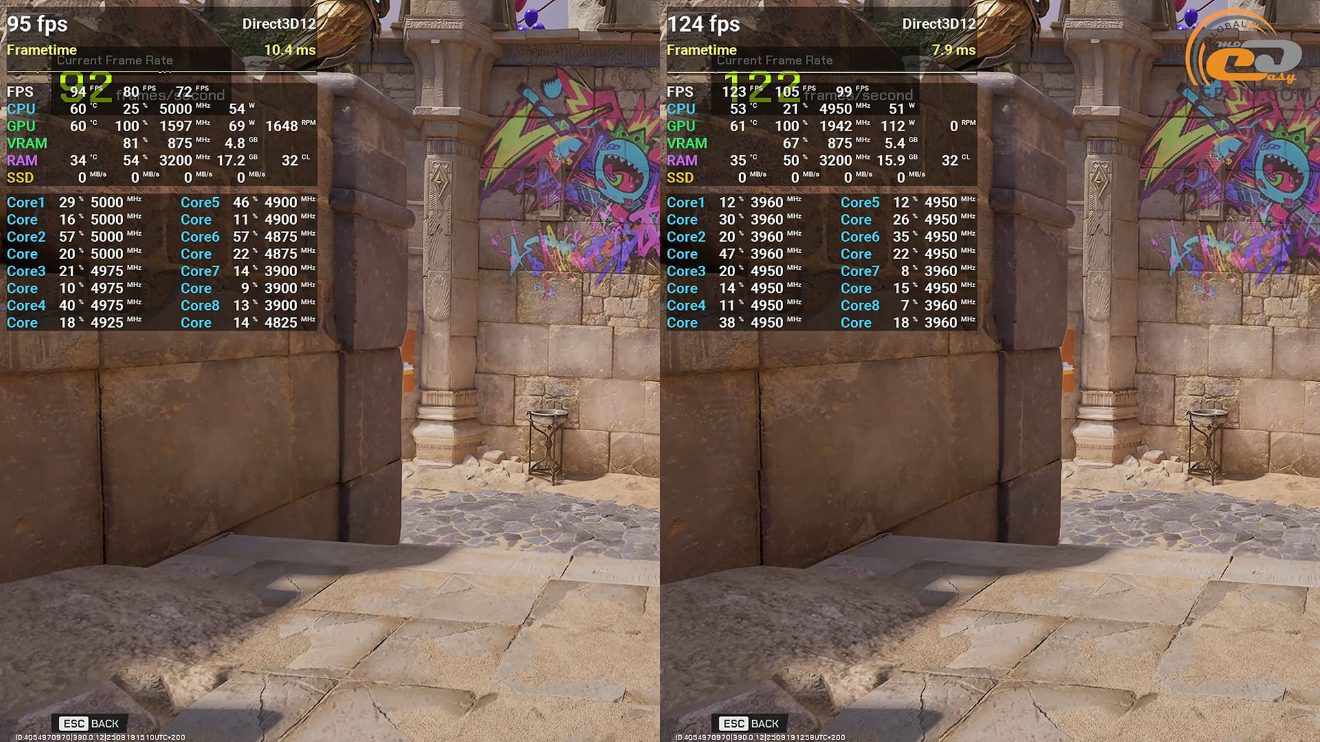 Преодолеть бенчмарк в Counter Strike 2 с достаточным для игры FPS при очень высоких настройках удалось обеим версиям видеокарты, однако более мощная версия оказалась сильнее примерно на 25 процентов и в моменты резкого развеивания дымовой гранаты из-за взрыва осколочной более слабая видеокарта сталкивалась с ощутимыми проседаниями.