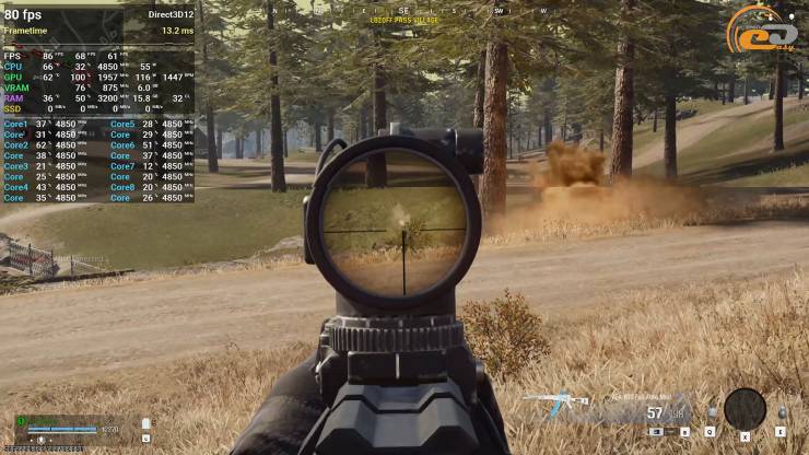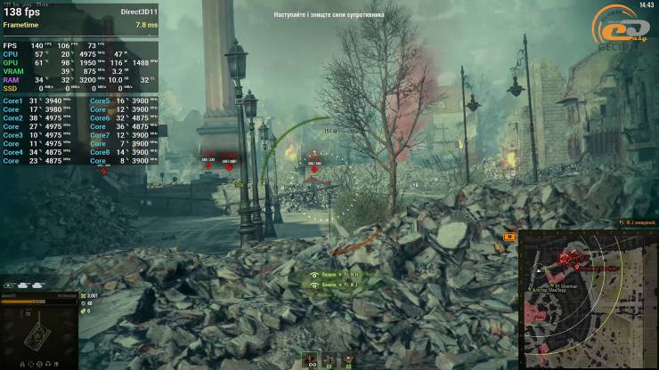 В заключение проверили производительность в недавно обновленной World of Tanks 2.0. Здесь даже на ультра настройках не возникает никаких вопросов к возможностям RTX 3050 преодолевать игры такого уровня. Итак, видим идеальный результат как на мониторинге, так и в реальности.