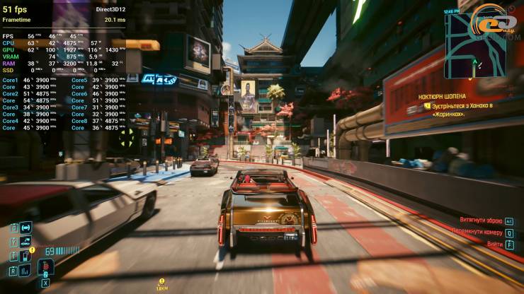 После большого количества обновлений и оптимизации в Cyberpunk 2077 возможностей видеокарты хватает даже на ультра пресет графики, если совсем не пробовать активировать трассировку лучей. А после добавления качественного режима DLSS путешествие по неоновому городу становится довольно приятным, несмотря на некоторые проседания частоты кадров ниже 60-ти FPS.