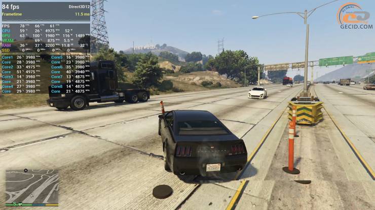 Также обновленная версия Grand Theft Auto V для этой бюджетной видеокарты не препятствует даже после применения пресета графики Very High RT. В центре города картинка обновляется примерно 75 раз в секунду, и когда заезжаем в район густой растительности геймплей остается доступным, хотя и теряем некоторую часть FPS и появляется небольшое ощущение инпутлага во время управления.