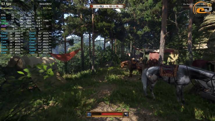 Путешествовать по густым лесам Kingdom Come Deliverance II можно на высоком пресете графики при качественном DLSS с однозначно приятными впечатлениями, похожими на Hunt Showdown. Да, когда заходим в лагерь с большим количеством NPC встречаются проседания ниже 60 FPS, но в свою очередь они совсем не ощущаются критическими. Конечно, по желанию не переживать по этому поводу можно снизив некоторые настройки.