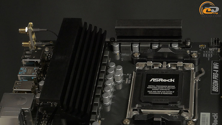 В плане коммуникаций материнская плата предлагает Wi-Fi 6E и сеть 2,5 Гбит/с, а также современный набор USB-портов, включая быстрые Type-C для интерфейсной панели.