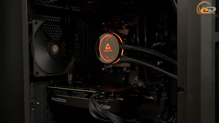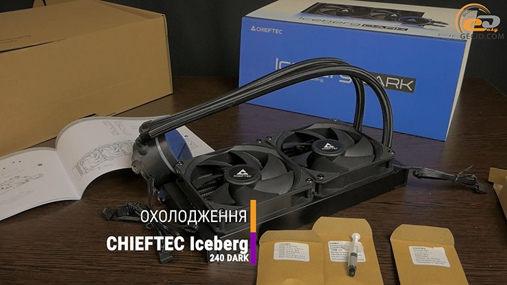 Несмотря на то, что выбранный процессор и так не является самым «горячим», но за его стабильным температурным режимом будет следить достаточно надежная система жидкостного охлаждения CHIEFTEC Iceberg 240 DARK.