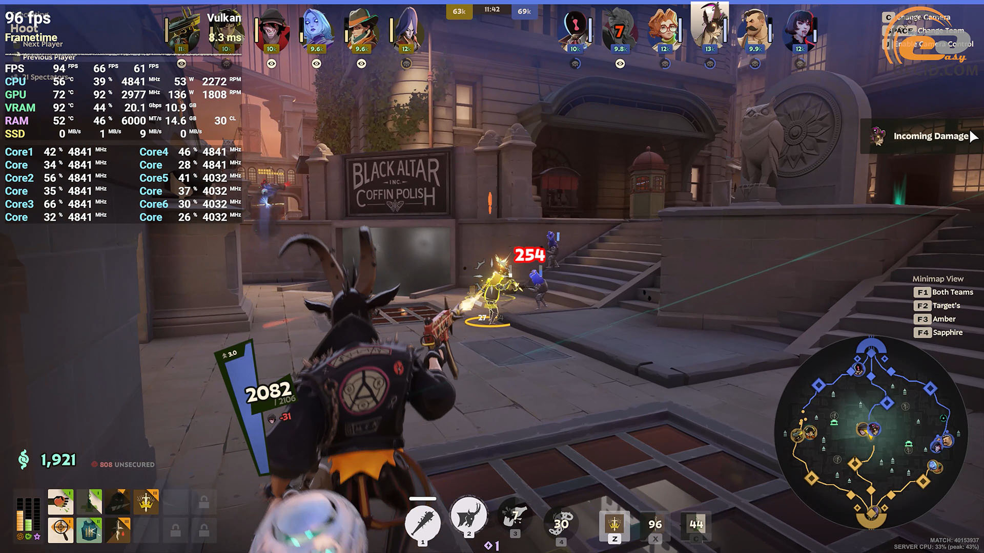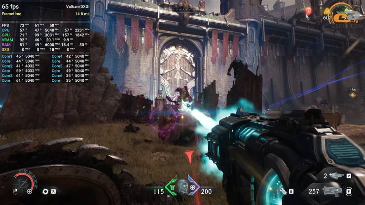 Боевые события на Верданских улицах в Call of Duty: Warzone даже на экстремальных настройках поглощают в себя с головой — никаких подергиваний или проседаний даже во время активных перестрелок или перебежек укрытиями при средних более сотни FPS. Это позволит вместе со своим «сквадом» выкладываться на максимум.
