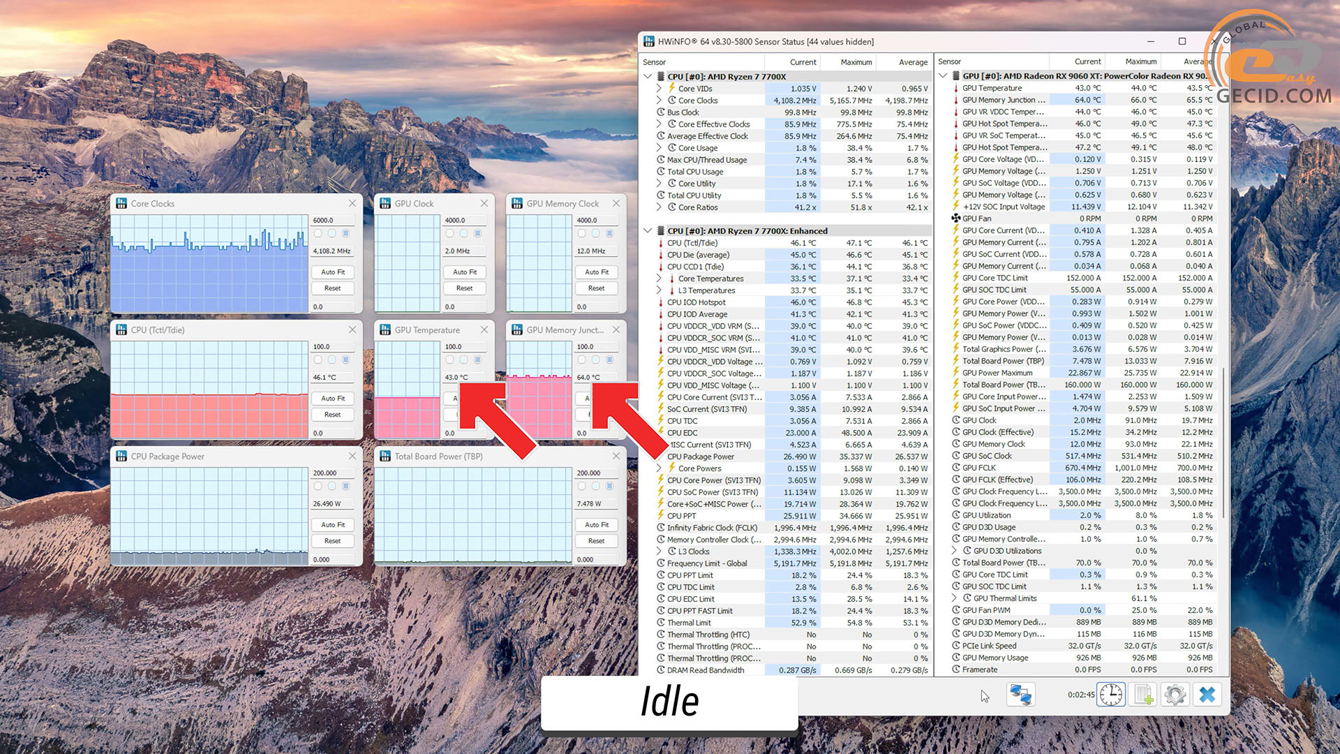 Когда система отдыхала, температура центрального процессора составляла 46 градусов, а GPU и VRAM нагрелись на 43 и 66 градусов соответственно. То есть, без существенных изменений.