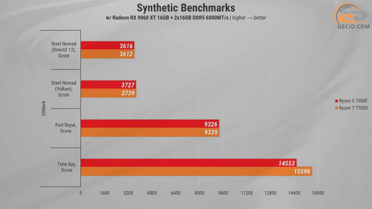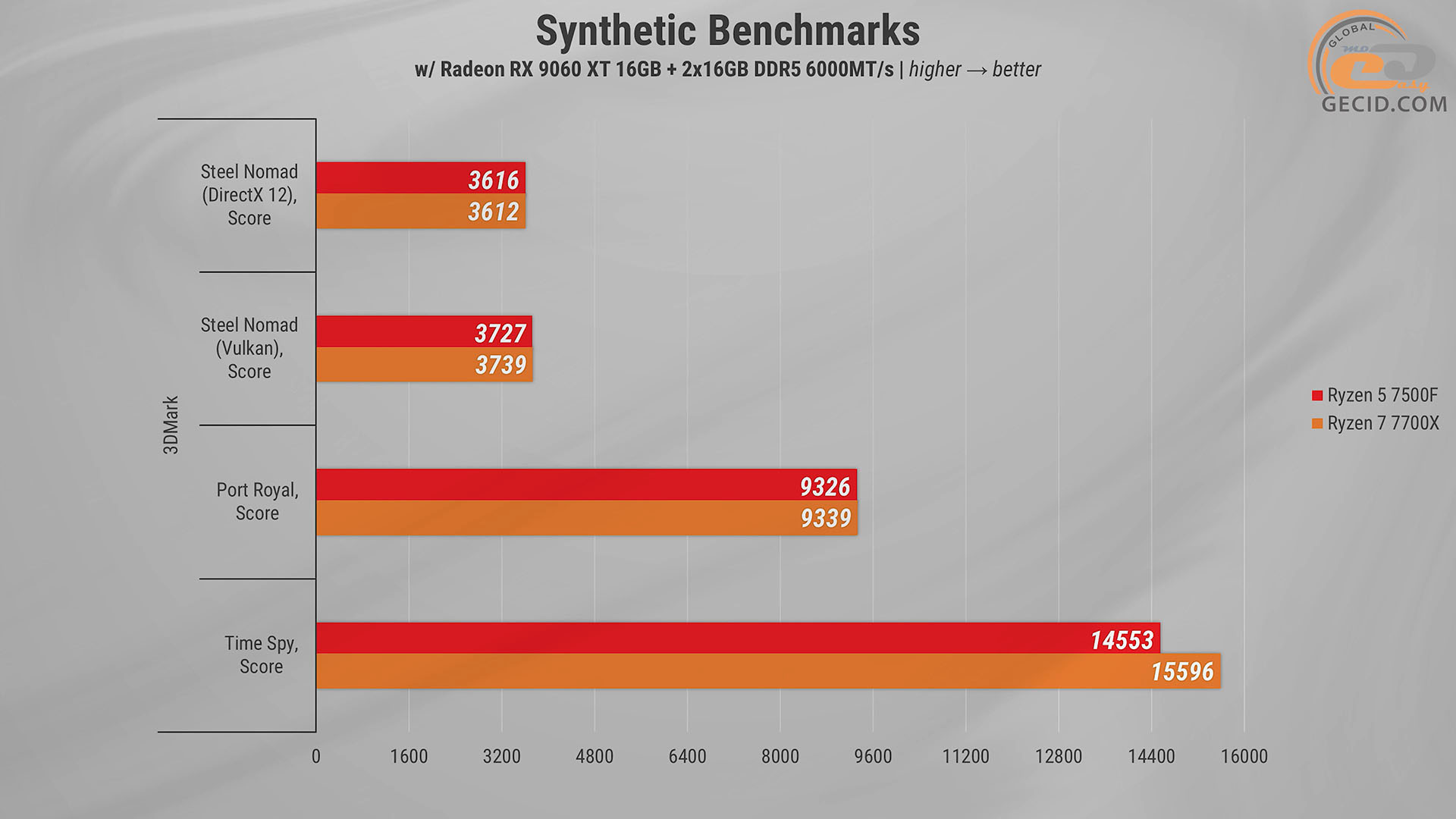 И вот теперь для более наглядного сравнения мы запустили стандартный набор синтетических тестов, результаты которых оказались достаточно логичными – чем больше нагрузка бенчмарк даже на процессор, тем более заметную разницу видим в производительности. При этом задачи, где ограничивающим фактором является видеокарта, показывают схожие результаты плюс-минус погрешность измерения. Сохранится ли такая тенденция в играх?