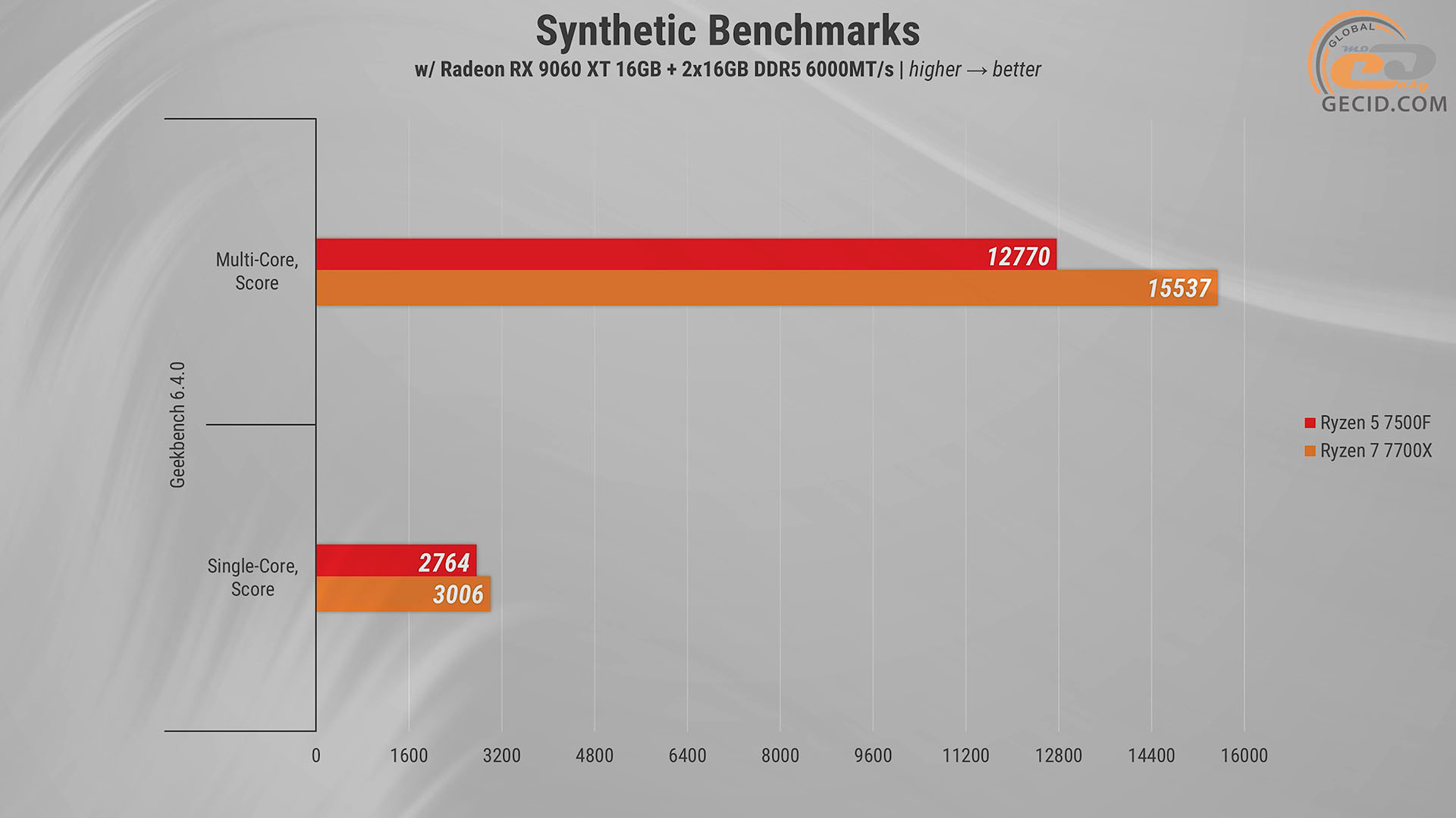 Базовая частота производительных ядер составляет 4,5 ГГц с возможностью разгона до 5,4 ГГц. Что касается уровня TDP, то он здесь почти уже в 2 раза больше Ryzen 5 7500F — 105 Вт. Да и цена тоже ровно в 2 раза выше, что заставляет задуматься стоит ли оно того. Давайте быстро посмотрим на возможности системы после апгрейда.