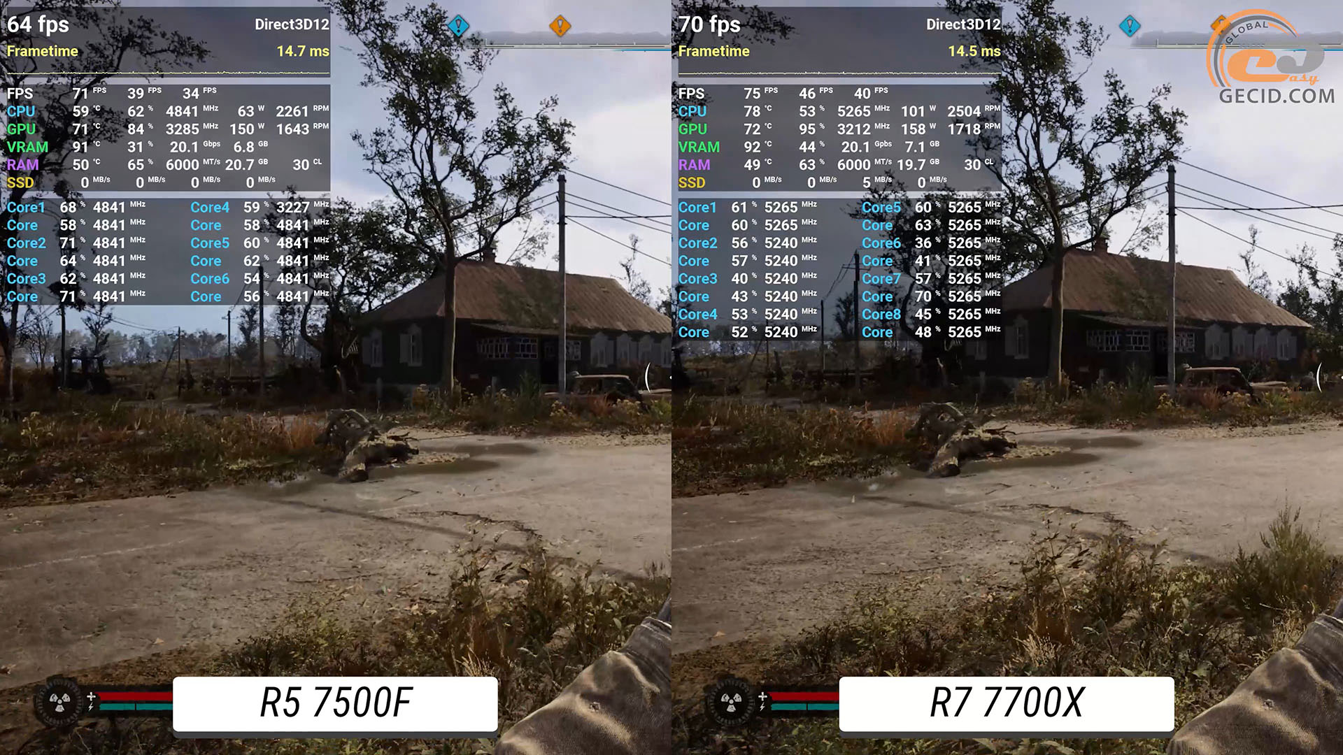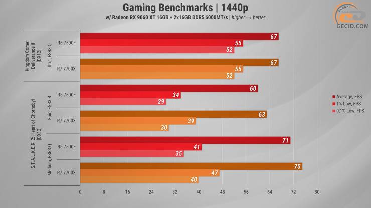Со снижением настроек до среднего уровня вместе с качественным FSR, 8-ядерник уже не так ощутимо улучшает геймплей, по меньшей мере в плане ощущений, тогда как сухие цифры говорят о положительной динамике на уровне предыдущего сценария.