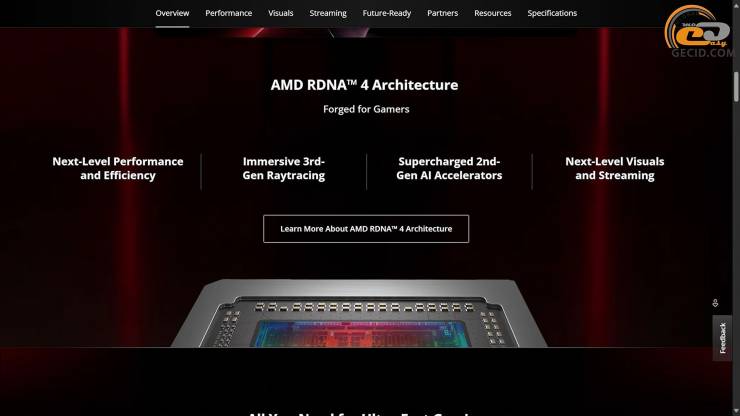 Данный ускоритель основан на новой архитектуре RDNA 4. Благодаря этому усовершенствованию он получил улучшение быстродействия ускорителей RT и AI, повышенное качество и скорость кодирования видео, а также поддержку четвертого поколения FSR, позволяющую заметно улучшать производительность с меньшей потерей четкости. Подробнее обо всех особенностях этой архитектуры мы разложили по полкам в обзоре Radeon RX 9070 XT.