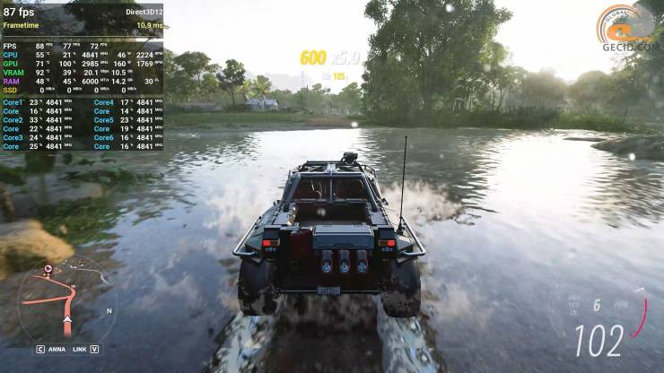 Производительности испытуемого ускорителя вполне хватает чтобы с комфортом кататься по мексиканским дорогам или бездорожью джунглей в Forza Horizon 5 на экстремальных настройках с улучшением затенением и трассировкой отражений для машины игрока. Хотя чуть-чуть и не хватает до сотни кадров в секунду, но сам игровой процесс очень стабильный без каких-либо нареканий.