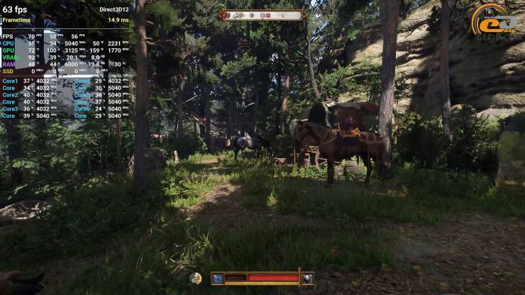 Средневековье Kingdom Come: Deliverance II также не становится проблемой для преодоления даже на «ультра» качественной картинке. Правда, даже с качественным режимом масштабирования во время прогулок через густой лес частота кадров может падать ниже желаемой планки в 60 изменений в секунду, но на незначительную величину без заметного ухудшения плавности геймплея.